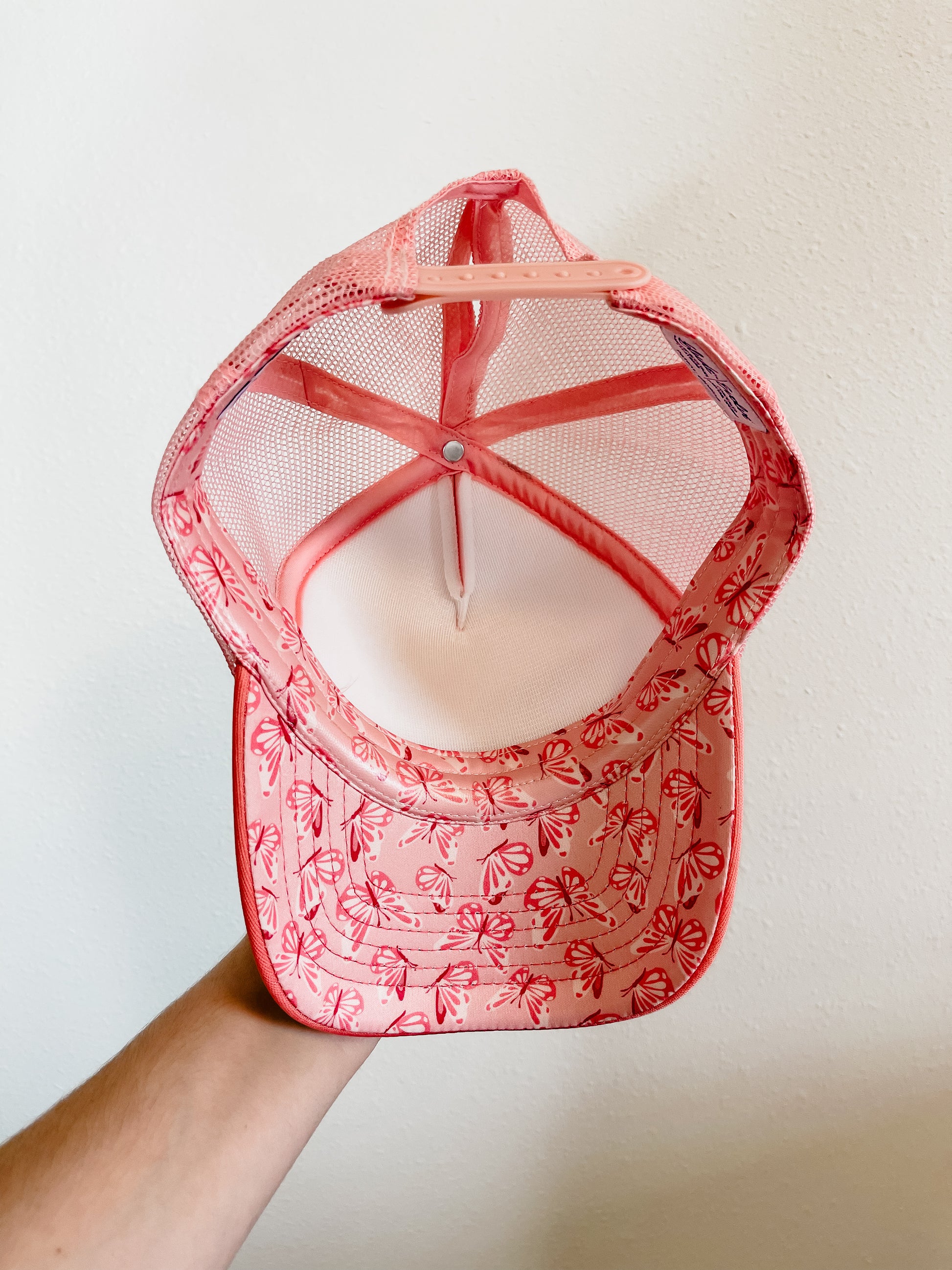 The underneath of the bill of this hat also has a gorgeous butterfly design to add to the amazingness of the hat.